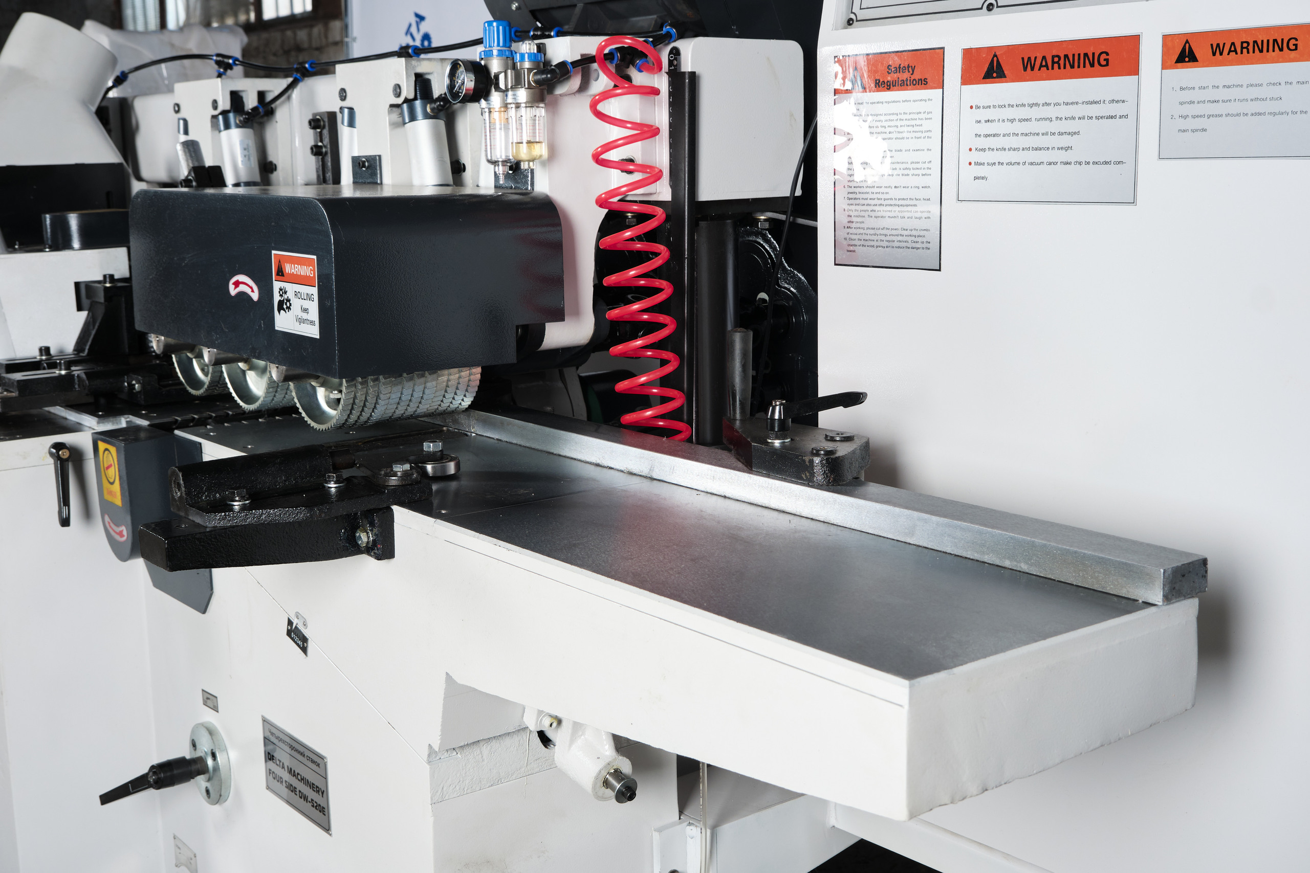 Четырёхсторонний станок DELTAMACHINERY FOUR SIDE DW-413F, оснащен четырьмя шпинделями.