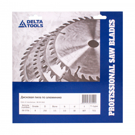 Дисковая пила DELTA TOOLS 250x30x3,5/3,0 Z=80 Neg по алюминию используются для резки изделий из алюминия и других цветных сплавов, пластика, органического стекла и т.п.
