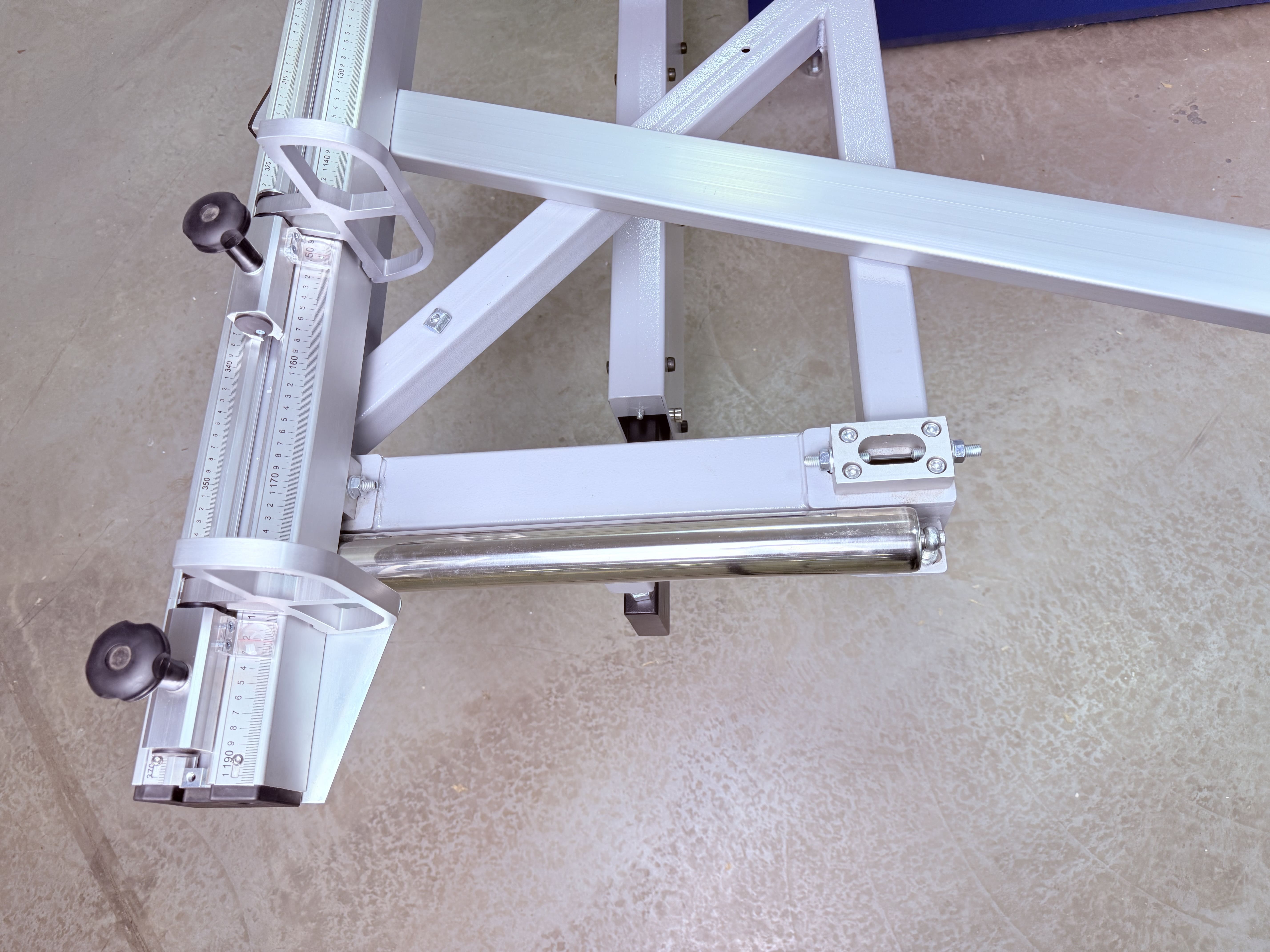 Вместо алюминиевой обеспечивает надежную поддержку даже на большом расстоянии Телескопическая металлическая опора шириной 320 мм и массивные кронштейны крепления к станине обеспечивают жесткость конструкции и позволяют работать с листами материала большой массы без потери точности и качества раскроя. Прочный шарнир с металлическими удлинителями вместо алюминиевых обеспечивает стабильную поддержку и равномерное перемещение стола в течении всего цикла. 3 комплекта направляющих роликов поддержки телескопической опоры обеспечивают безусловную плавность хода и распределяют нагрузки для более длительной эксплуатации.