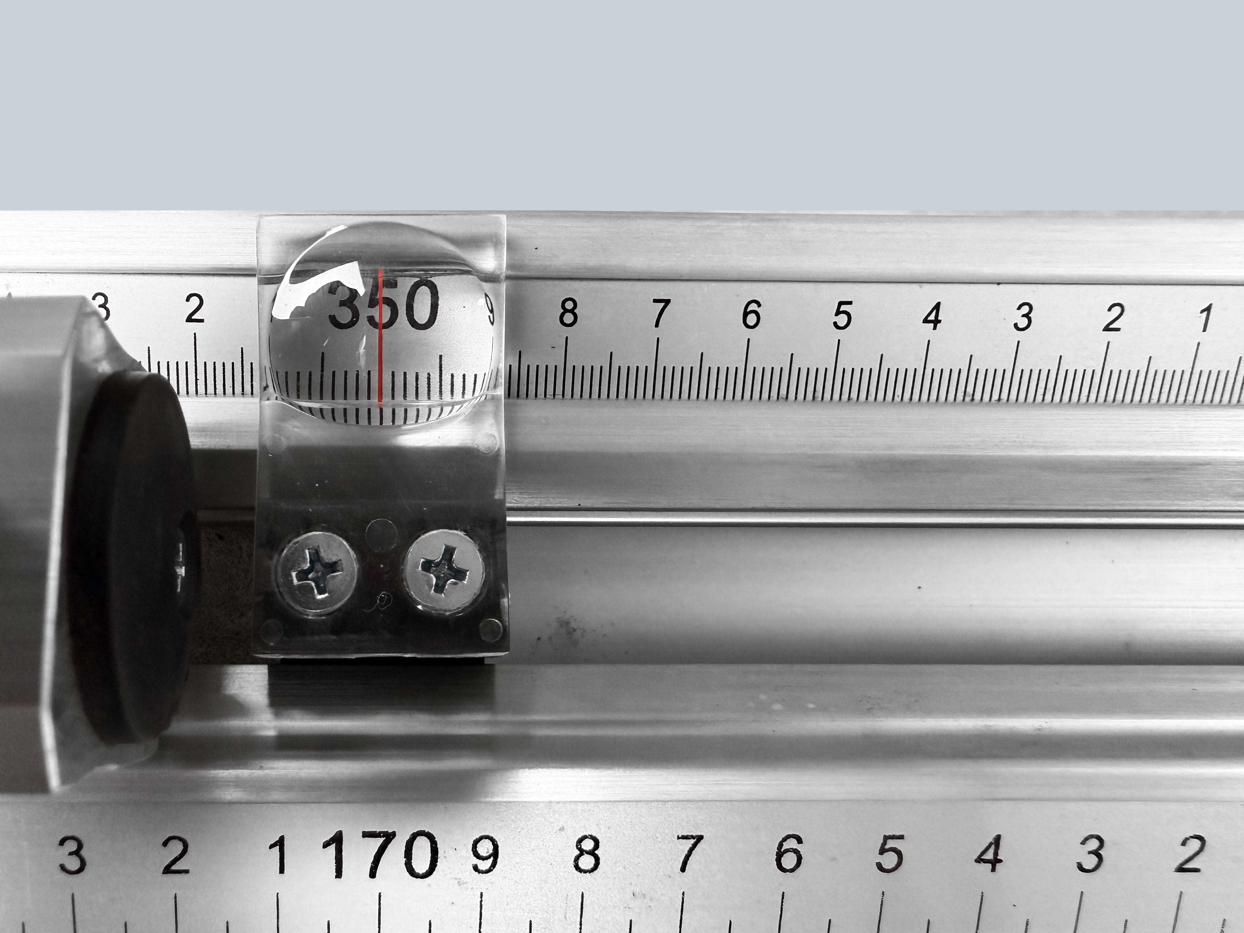 Поперечная линейка станка жестко фиксируется к поддерживающему столу в двух точках под углом 90 градусов к линии пропила. Настраивается единожды и не требует дополнительных регулировок. Это исключает смещение линейки во время работы и гарантирует правильную геометрию раскроя.