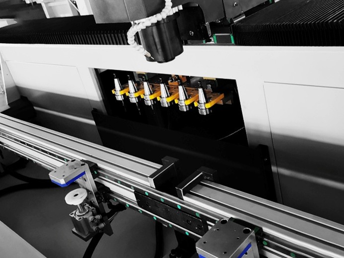 Мощный высокоскоростной шпиндель 9 кВт 24 000 об/мин в сочетании с магазином на 6 инструментов обеспечивает чистовую обработку и быструю смену операций.