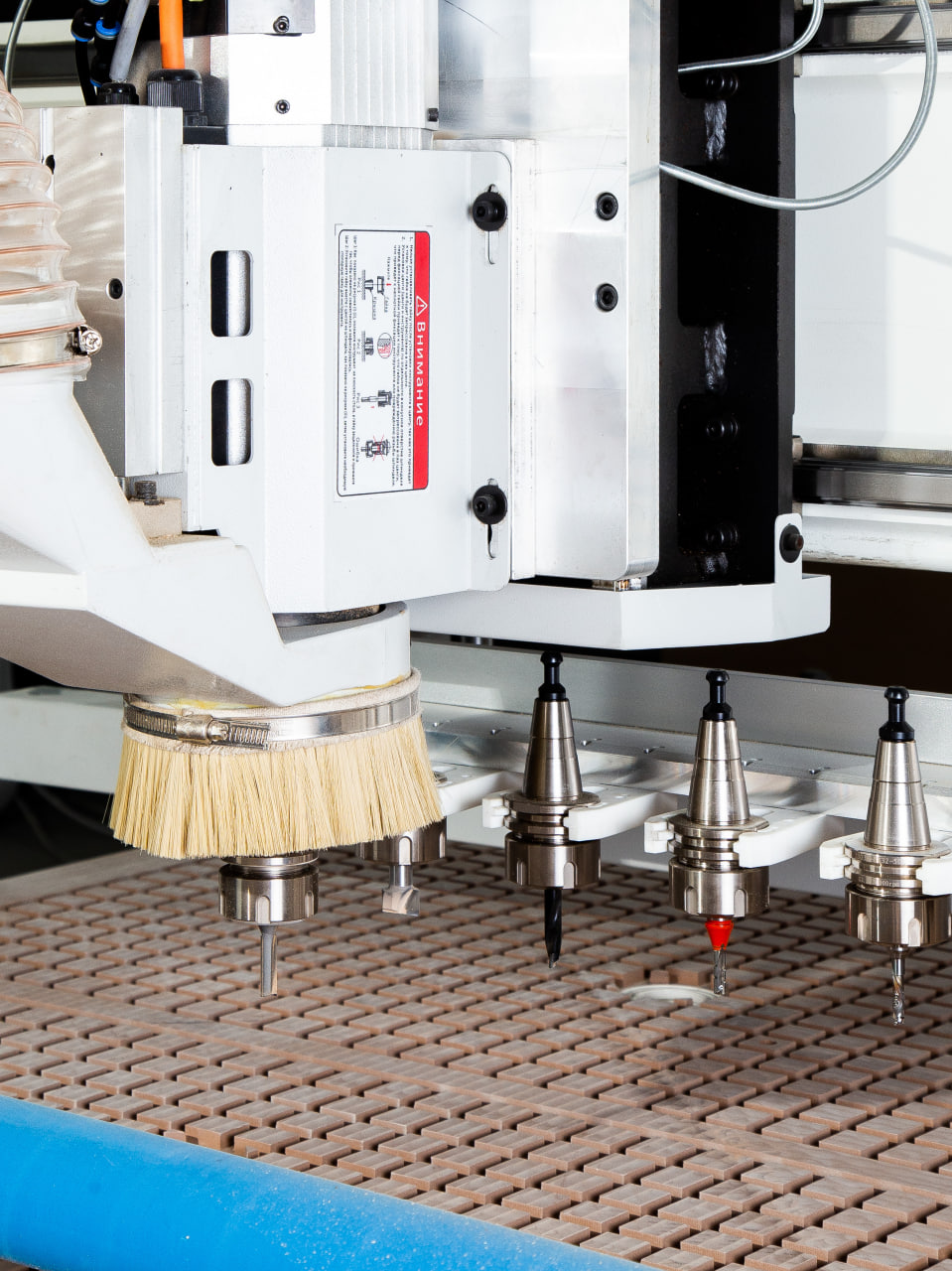 Станок оснащен шпинделем промышленной серии мощностью 9 кВт с оборотами 24000 об/мин Способ смены инструмента: автоматический Длительный срок службы, стойкость к нагрузкам, стабильная работа.