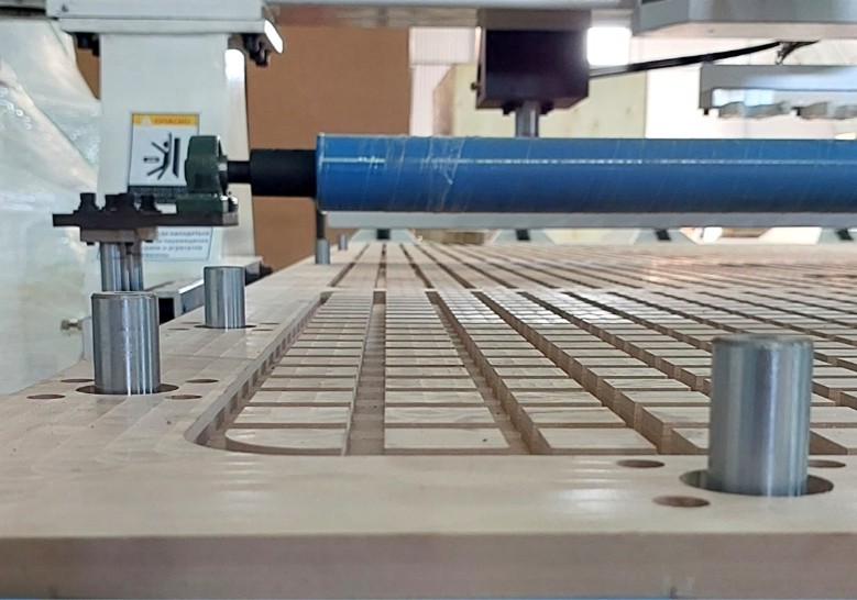 Для удобства загрузки обрабатываемых листов материала на стол предусмотрены специальные ролики. Кроме того, станок в базовом исполнении оснащен системой разгрузки, которая сталкивает обработанные детали и очищает стол от стружки. Всё это в целом ускоряет процесс производства.