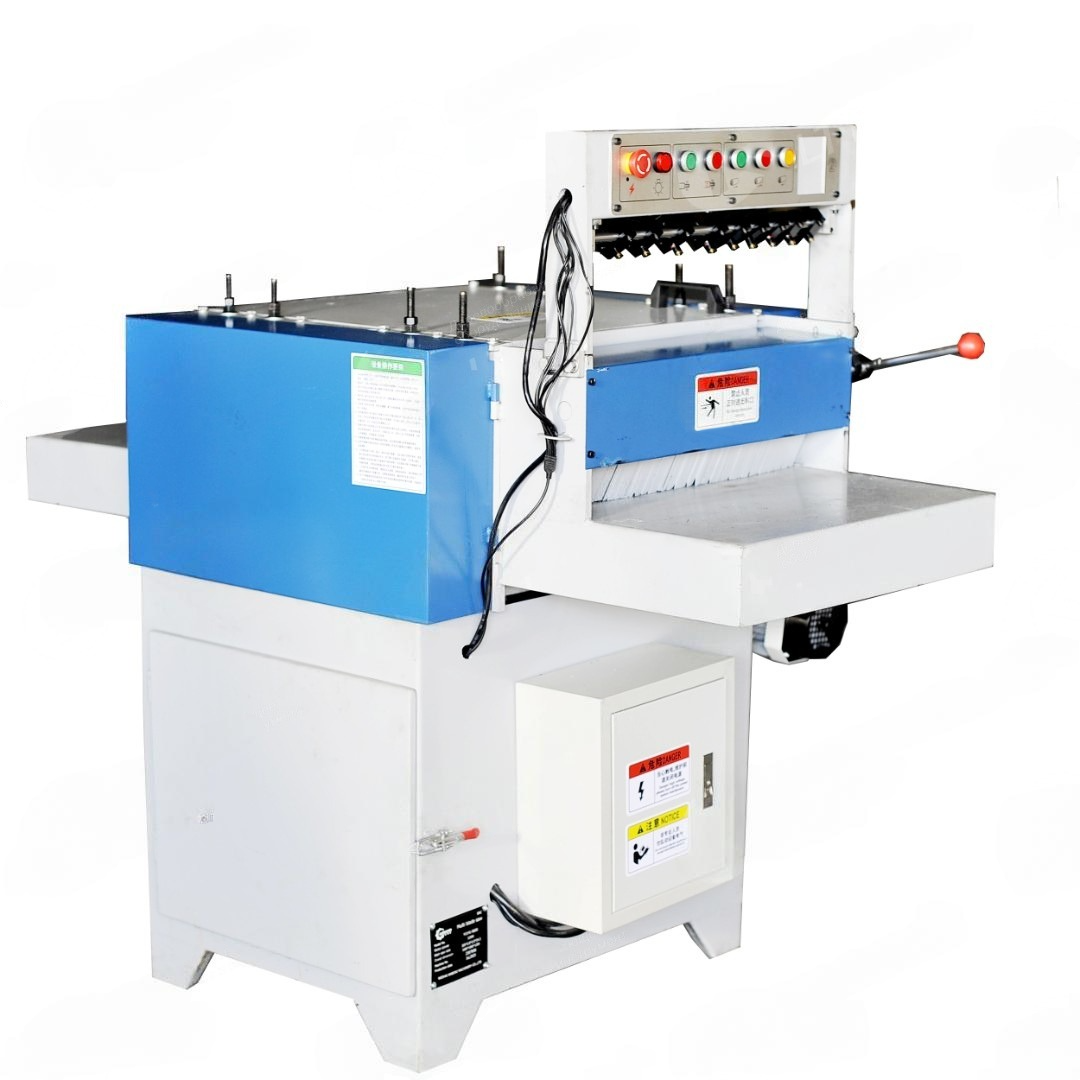 Многопильный станок предназначен для роспуска доски на ламели нужной ширины. На вал станка устанавливается от 2 до 9 пил, ширина распила регулируется проставочными кольцами 10, 15, 20, 50 мм.