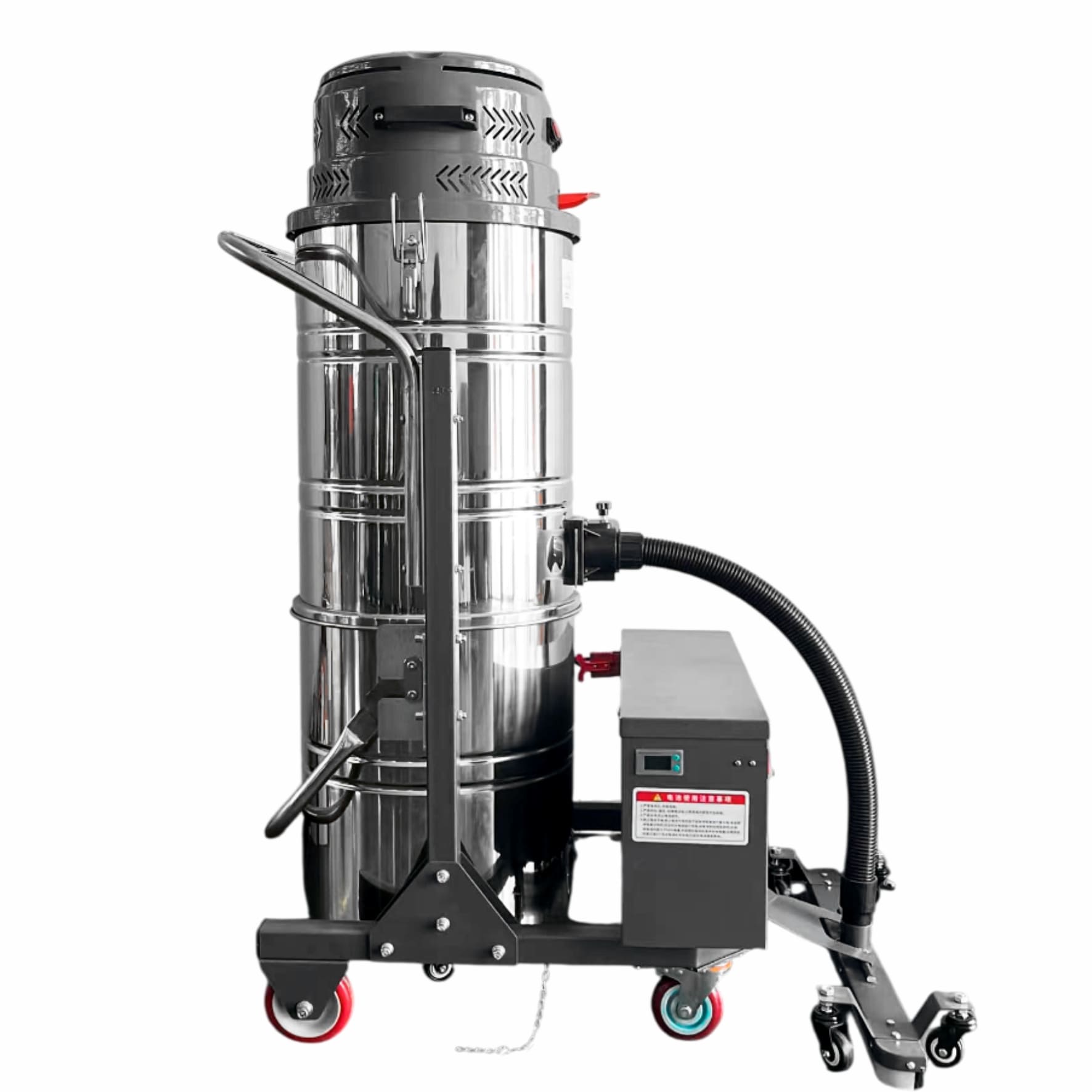 Пылесос оснащен аккумулятором. Удобство при работе на больших производственных и складских площадях. Уровень заряда батарей отражается на дисплее.