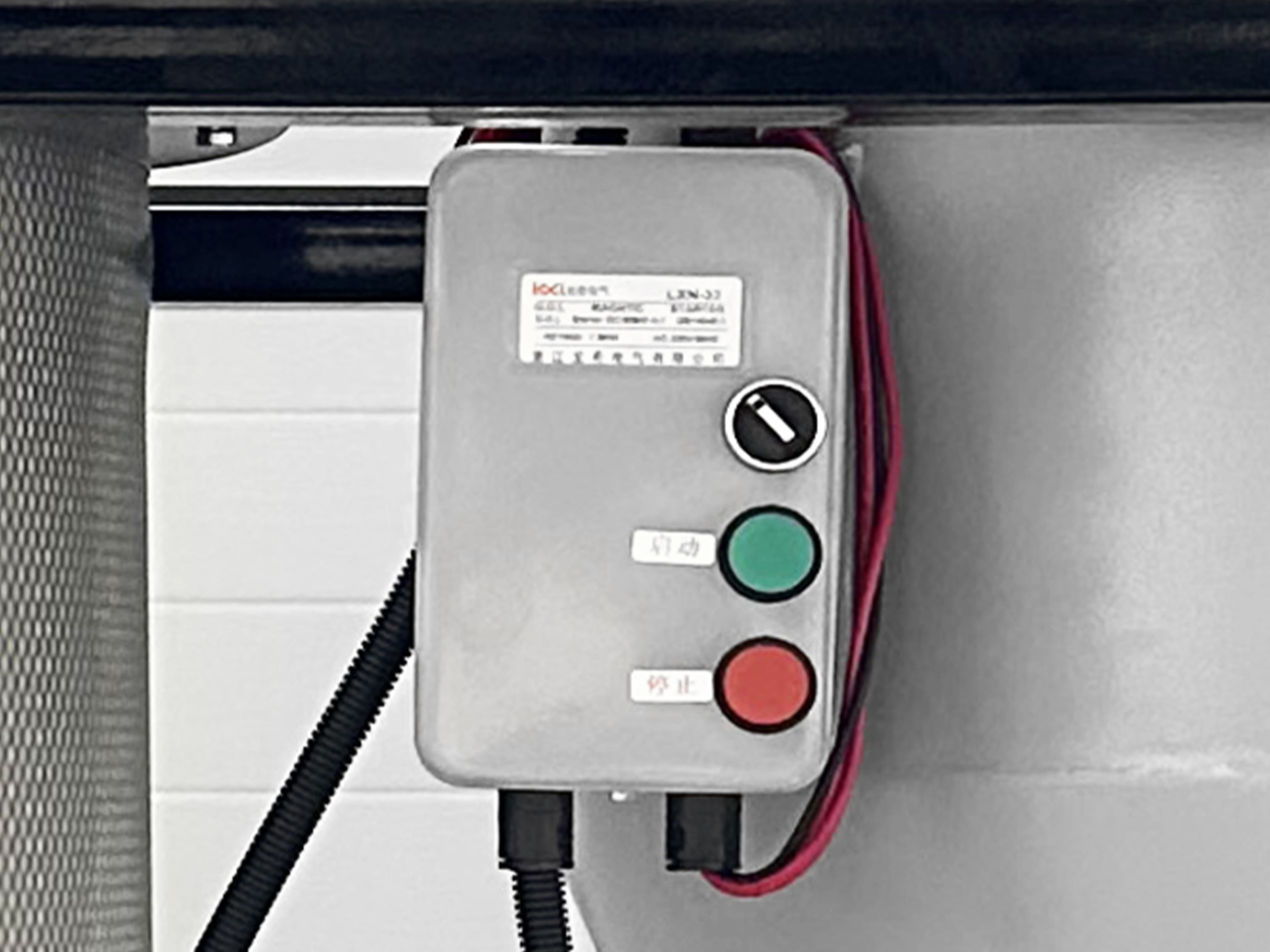 Промышленный пускатель имеет кнопки включения и выключение, обеспечивает надежный запуск двигателя.