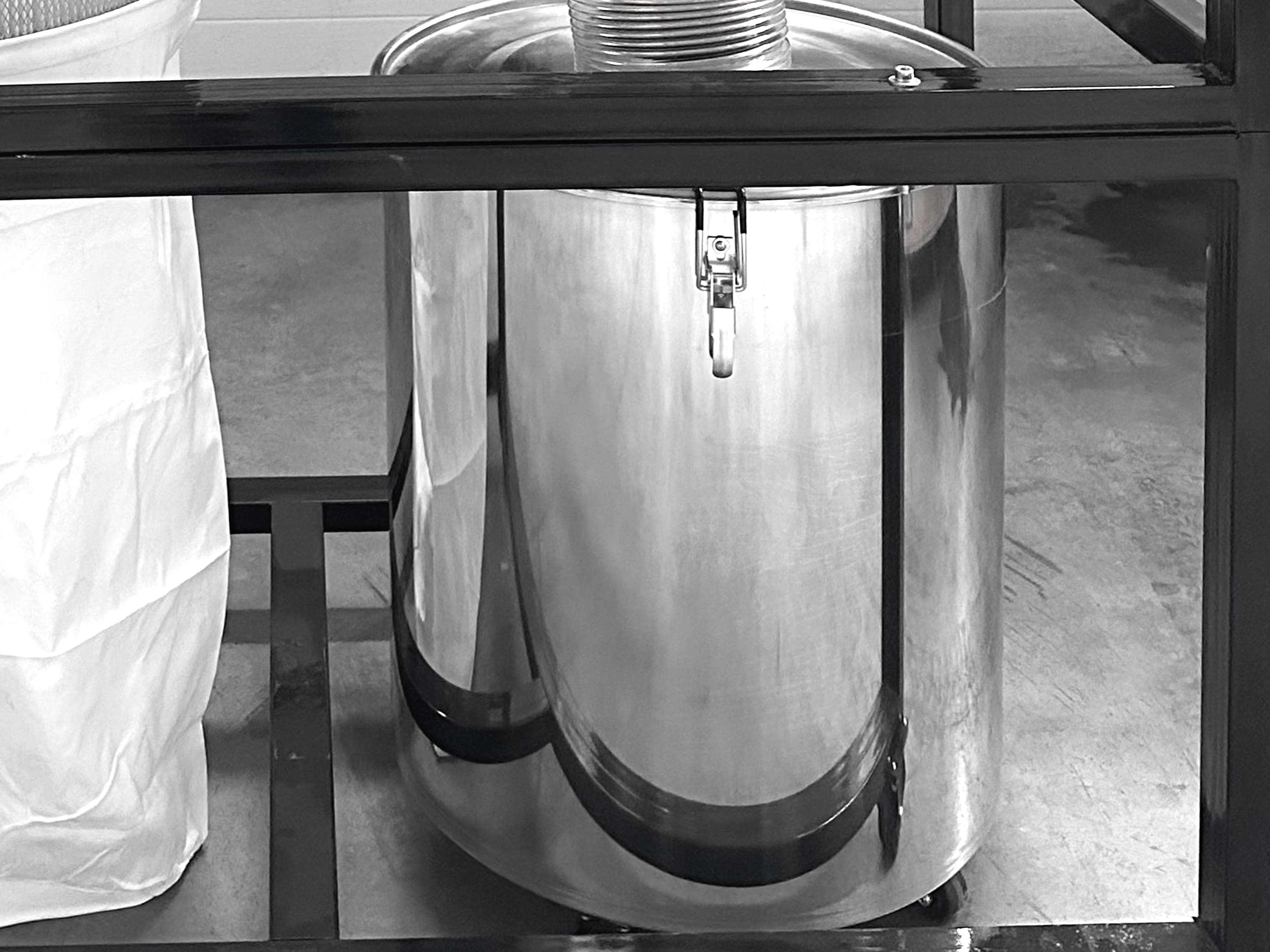 В данном отсеке происходит очистка воздуха от твёрдых загрязнений (стружка, опил и т.д.) при помощи центробежной силы происходит отделение «тяжелых» частиц от воздушного потока.