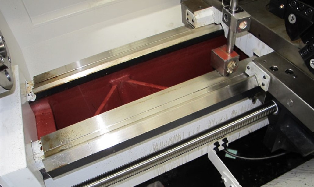 Литая станина усилена ребрами жесткости. V-образные закаленные и отшлифованные направляющие станины покрыты специальным покрытием Turcite-B для перемещения с минимальным износом и трением.