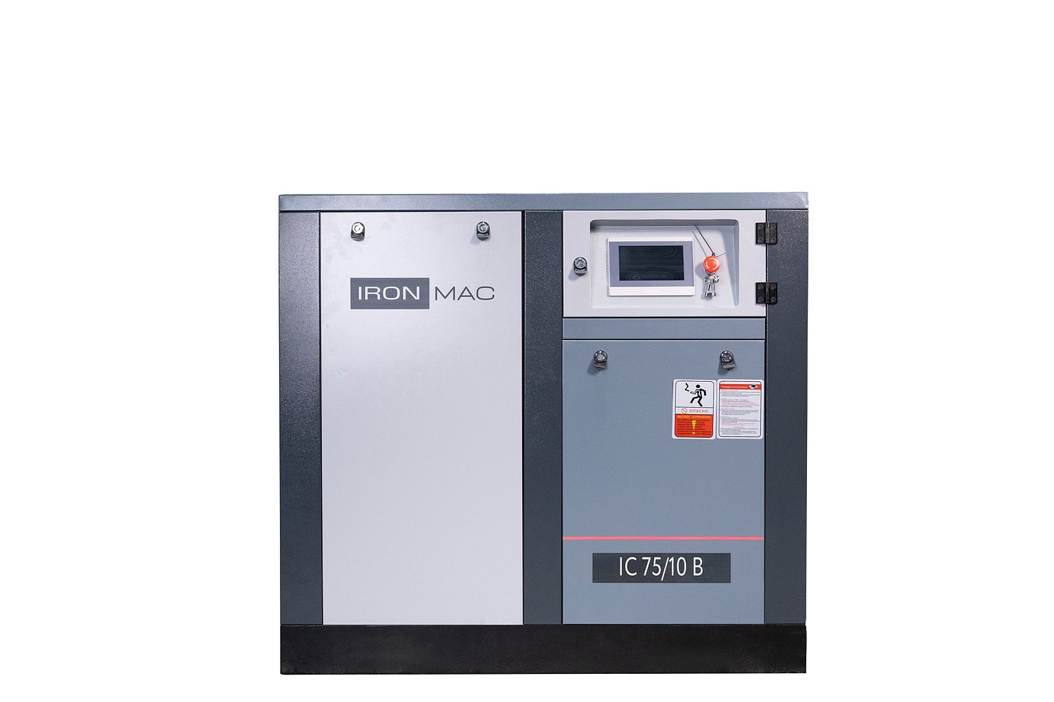 Винтовой компрессор IronMac IC B из основной линейки, собран на прочной стальной раме. Компрессор предназначен для малых и средних предприятий, а все узлы конструкции фиксируются к жесткому основанию и дополнительно изолируются от вибраций. На серии IC B реализована система ременного привода через клиновые ремни, а двигатель имеет уровень защиты от IP 23 до IP 55.